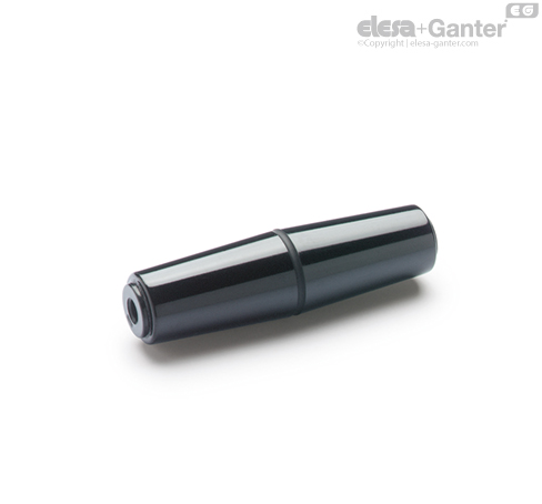 Duroplástico de base fenólica (PF), color negro, acabado mate con ranura diametral.
