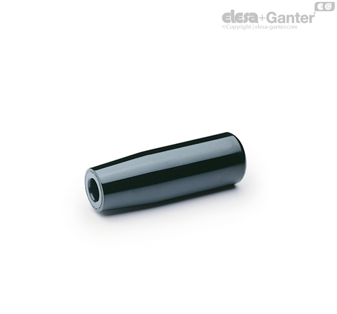 Duroplástico de base fenólica (PF), color negro, acabado brillante.