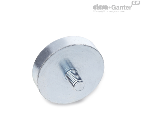 Los imanes de sujeción GN 50.3 se combinan con el alojamiento de acero y el anillo de plástico en un sistema que protege y refuerza el imán para una transmisión óptima del flujo magnético en la superficie magnética.