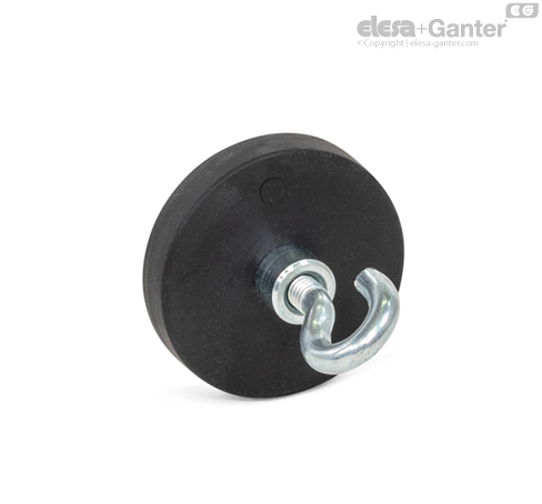 Los imanes con cubierta de caucho GN 51.10 forman un sistema junto con la pieza de acero que protege y refuerza el imán, concentrando el flujo magnético de forma óptima sobre la superficie magnética engomada.