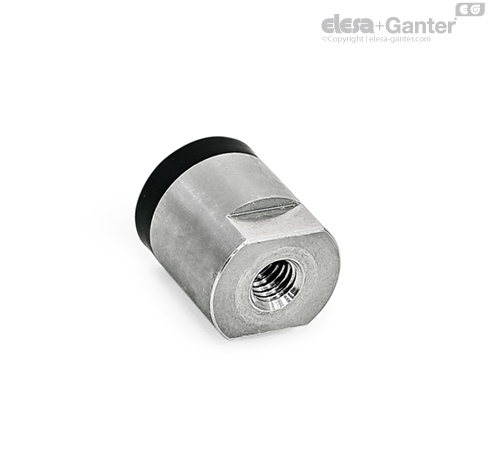 Los imanes GN 52.6 se combinan con la carcasa de acero inoxidable y el anillo de plástico en un sistema que protege y refuerza el imán para una transmisión óptima del flujo magnético a la superficie magnética de goma.