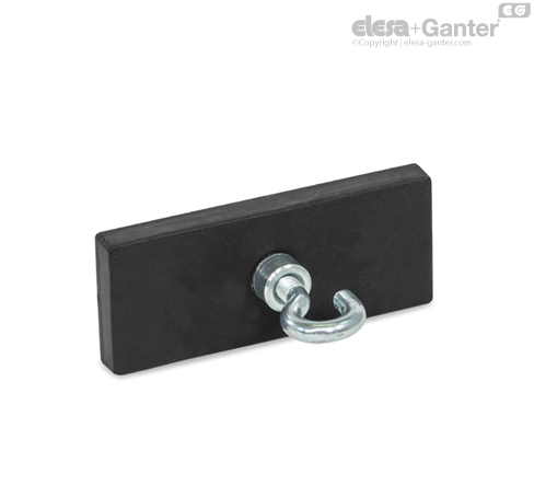 Los imanes con cubierta de caucho GN 57.10 forman un sistema junto con la pieza de acero que protege y refuerza el imán, concentrando el flujo magnético de forma óptima sobre la superficie magnética engomada.