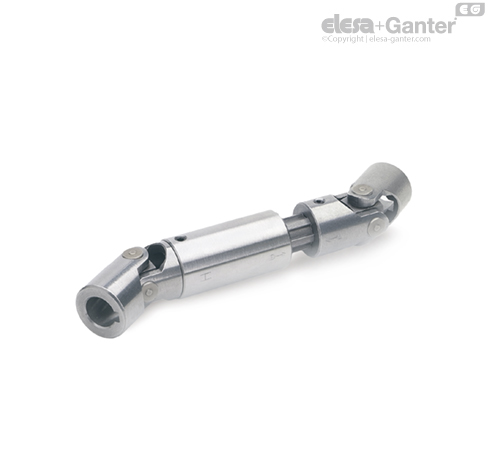 Los ejes de articulaciones universales con cojinete de agujas GN 808.3 no solo corrigen la desviación entre dos ejes, sino que también permiten el alineamiento de longitudes, lo que, dependiendo de la longitud total l1, permite la longitud de extracción correspondiente l2. La transmisión de la potencia se consigue por medio de dos articulaciones universales DIN 808 (Tipo EW), un eje ranurado y un manguito deslizante. Es importante verificar la precisión cuando se conecta el eje acanalado al manguito deslizante. Las marcas -> <- tienen que estar una enfrente a la otra. Cualquier problema en la conexión da lugar a una prestación desequilibrada y al consiguiente desgaste rápido.