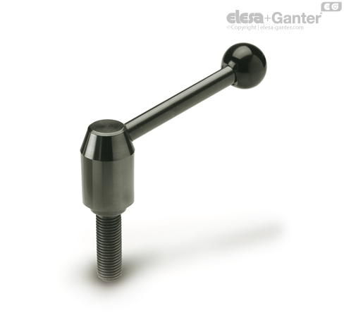 Las manillas graduables GN 212.3 han demostrado ser ideales cuando la pieza tiene que sujetarse en un espacio determinado o el ángulo de maniobra resulta limitado por razones de espacio. El inserto central está conectado a la palanca a través de un elemento dentado que se puede desembragar fácilmente.