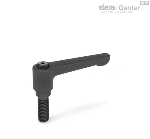 Las empuñaduras graduables son ideales donde dos partes deben ser fijadas en un espacio o donde la palanca tiene que estar en una determinada posición. El inserto central se conecta a la palanca mediante un dentado por entalladura que puede desacoplarse fácilmente.