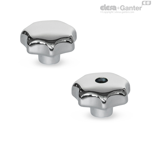 Pomos en estrella de acero inoxidable GN 6336 satisfacen las dimensiones de DIN 6336 pero difieren en términos de su geometría sin vaciado, lo que hace que sean más fáciles de limpiar y ayuda a prevenir la posible acumulación de suciedad.