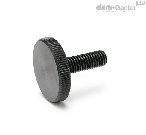 Pomos moleteados DIN 653 se han torneado completamente a partir de una sola pieza. La rosca del tornillo se extiende normalmente hasta el collar y termina en una salida sin rebaje conforme a la designación A de DIN.