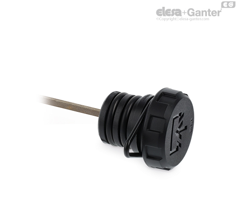 Apropiado cuando se deba evitar la pérdida del tapón. La horquilla elástica, situada en la acanaladura del tapón, puede girar libremente.