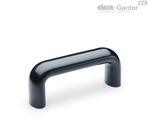 Duroplástico de base fenólica (PF), color negro, acabado brillante.