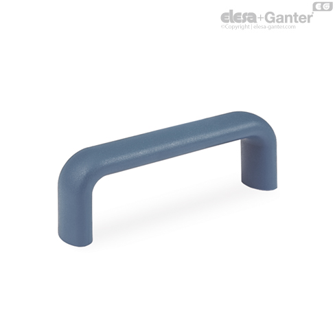 Tecnopolímero de base poliamídica (PA) reforzado con fibra de vidrio, color azul RAL 5001, acabado mate.