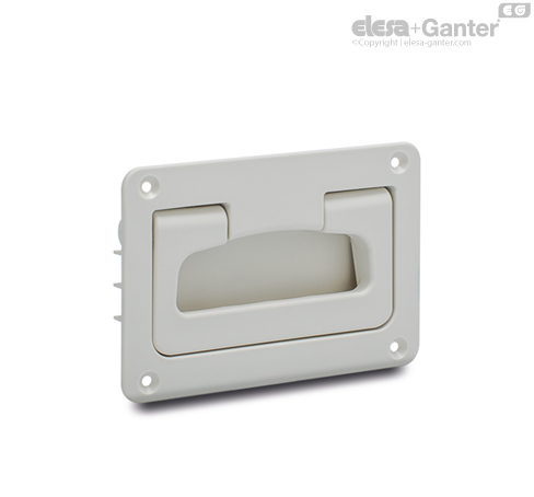 Tecnopolímero de base poliamídica (PA) reforzado con fibra de vidrio, color blanco parecido a RAL 9002, acabado mate.