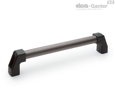 Tecnopolímero de base poliamídica (PA) reforzado con fibra de vidrio, color negro, acabado mate. Se suministran montadas. El alojamiento del tubo en el soporte ha sido diseñado para evitar su rotación.