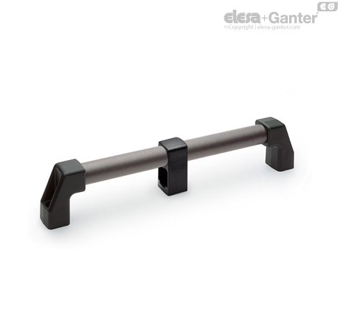 Tecnopolímero de base poliamídica (PA) reforzado con fibra de vidrio, color negro, acabado mate. Se suministran montadas. El alojamiento del tubo en el soporte ha sido diseñado para evitar su rotación.