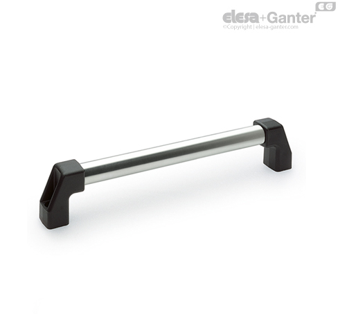 Tecnopolímero de base poliamídica (PA) reforzado con fibra de vidrio, color negro, acabado mate. Se suministran montadas. El alojamiento del tubo en el soporte ha sido diseñado para evitar su rotación.
