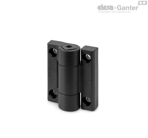 El sistema de regulación (patente de ELESA), accionado mediante un tornillo a tal efecto situado en el eje de la bisagra, permite aumentar o reducir el par de resistencia de la bisagra de forma controlada en ambos sentidos.