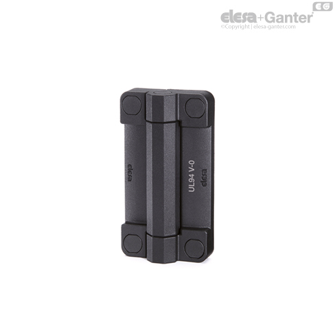 Tecnopolímero de base poliamídica (PA) reforzado con fibra de vidrio, certificado autoextinguible UL-94-V0, color negro o gris RAL 7040 (C33), acabado mate.