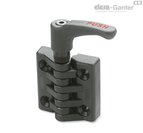 El efecto de fricción de consigue enclavando las dos partes de la bisagra mediante la manilla regulable especial.