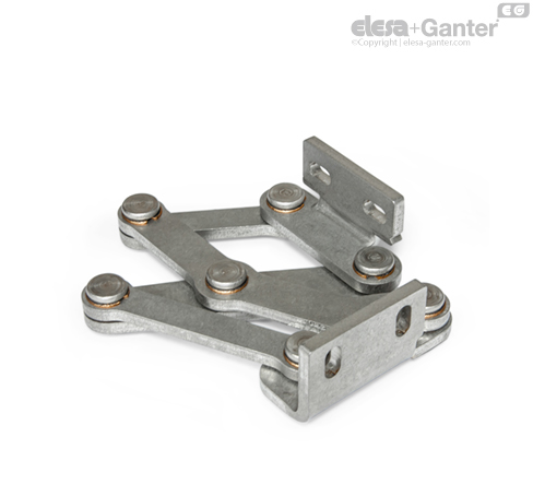 Las bisagras con uniones múltiples GN 7231 se instalan en el interior de las solapas, escotillas y compuertas para ahorrar espacio y garantizar una protección eficaz frente a actos vandálicos. La bisagra tiene un ángulo de apertura máximo de 90°, lo que la hace perfecta para puertas gruesas.