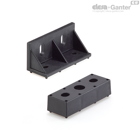 La escuadra y el soporte facilitan el montaje de los raíles de rodillos ELEROLL sobre máquinas y otras estructuras de soporte.
