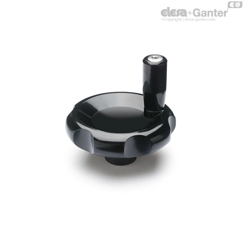 Duroplástico de base fenólica (PF), color negro, acabado brillante.