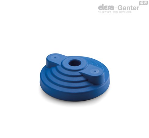 Tecnopolímero de base poliamídica (PA) reforzado con fibra de vidrio, color azul RAL 5005, acabado mate.