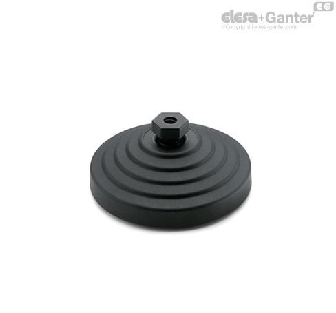 La especial conformación de la base y del disco antideslizante asegura el montaje de las dos partes sin posibilidad de soltarse, incluso en caso de fuertes golpes o de adherencia con las superficies de apoyo del elemento de nivelación (véase Sin disco antideslizante).