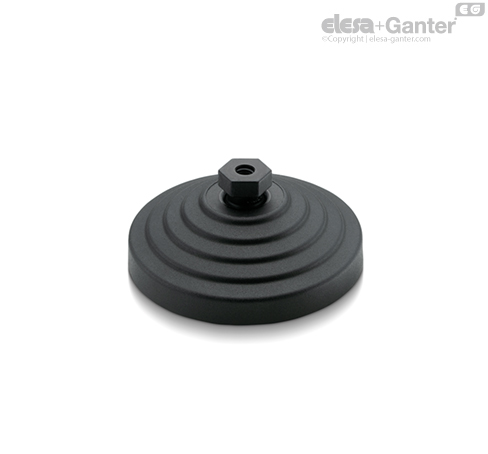 La especial conformación de la base y del disco antideslizante asegura el montaje de las dos partes sin posibilidad de soltarse, incluso en caso de fuertes golpes o de adherencia con las superficies de apoyo del elemento de nivelación (véase Sin disco antideslizante).