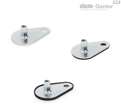 Los pies de nivelación se pueden fijar a la superficie de montaje con la lengüeta de fijación, que evita desplazamientos laterales. Además, los tipos con disco de goma protegen las superficies delicadas.