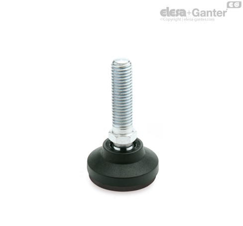 La especial conformación de la base y del disco antideslizante asegura el montaje de las dos partes sin posibilidad de soltarse, incluso en caso de fuertes golpes o de adherencia con las superficies de apoyo del elemento de nivelación (véase Sin disco antideslizante ).