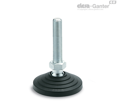 La especial conformación de la base y del disco antideslizante asegura el montaje de las dos partes sin posibilidad de soltarse, incluso en caso de fuertes golpes o de adherencia con las superficies de apoyo del elemento de nivelación (véase Sin disco antideslizante).