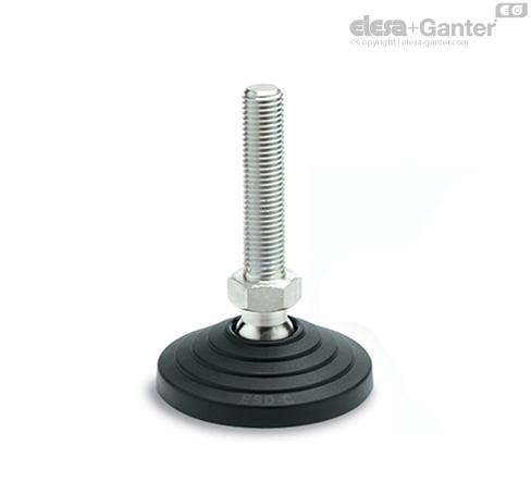 La especial conformación de la base y del disco antideslizante asegura el montaje de las dos partes sin posibilidad de soltarse, incluso en caso de fuertes golpes o de adherencia con las superficies de apoyo del elemento de nivelación (véase Sin discos antideslizantes).