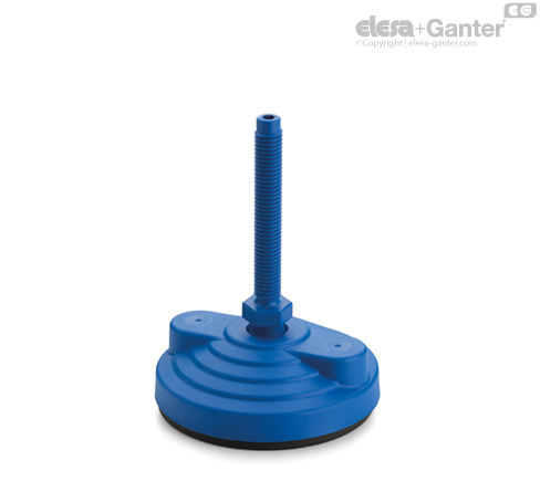 La especial conformación de la base y del disco antideslizante asegura el montaje de las dos partes sin posibilidad de soltarse, incluso en caso de fuertes golpes o de adherencia con las superficies de apoyo del elemento de nivelación (véase Sin discos antideslizantes).