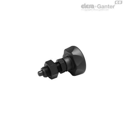 SUPER-tecnopolímero, un producto de la tecnología de ELESA. Dimensiones del cuerpo roscado y el émbolo según los estándares de GN 612, de acuerdo con Otto Ganter GmbH Co. KG.