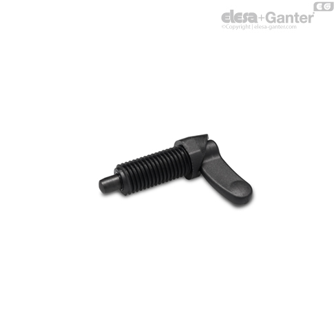 SUPER-tecnopolímero, un producto de la tecnología de ELESA. Dimensiones del cuerpo roscado y el émbolo según los estándares de GN 612, de acuerdo con Otto Ganter GmbH Co. KG.