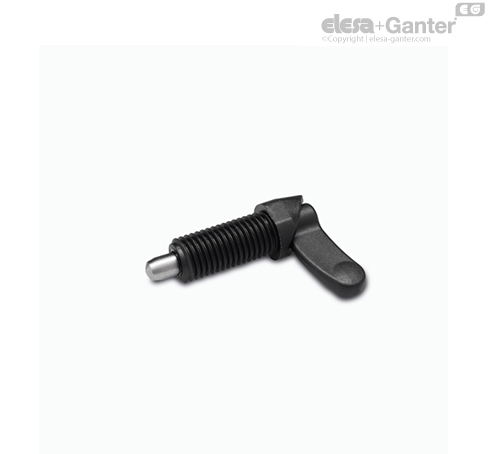 SUPER-tecnopolímero, un producto de la tecnología de ELESA. Dimensiones del cuerpo roscado y el émbolo según los estándares de GN 612, de acuerdo con Otto Ganter GmbH Co. KG.