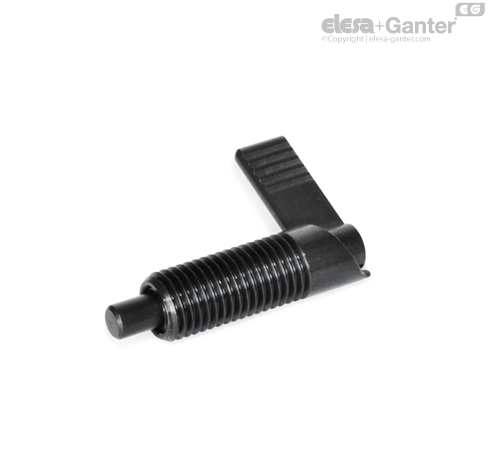 En los posicionadores de muelle por palanca GN 721, el pivote de retención del posicionador se retrae girando el bloqueo 180 °.
