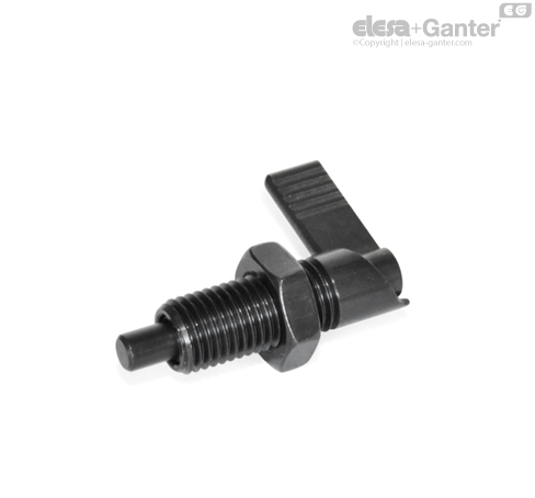 En los posicionadores de muelle por palanca GN 721, el pivote de retención del posicionador se retrae girando el bloqueo 180 °.