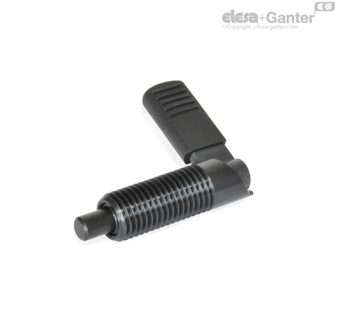 En los posicionadores de muelle por palanca GN 721, el pivote de retención del posicionador se retrae girando el bloqueo 180 °.