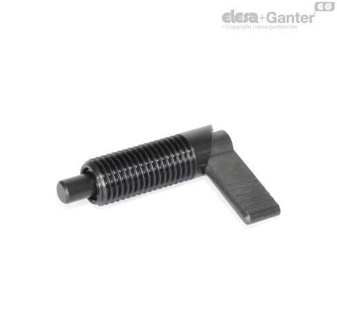 La ranura de los posicionadores de muelle por palanca GN 721.1 garantiza que el pivote de retención permanezca retraído.