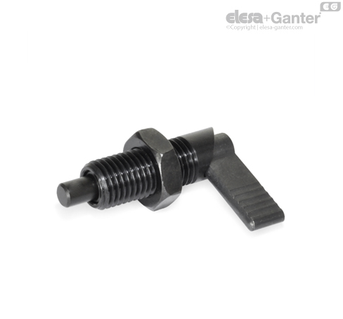 La ranura de los posicionadores de muelle por palanca GN 721.1 garantiza que el pivote de retención permanezca retraído.