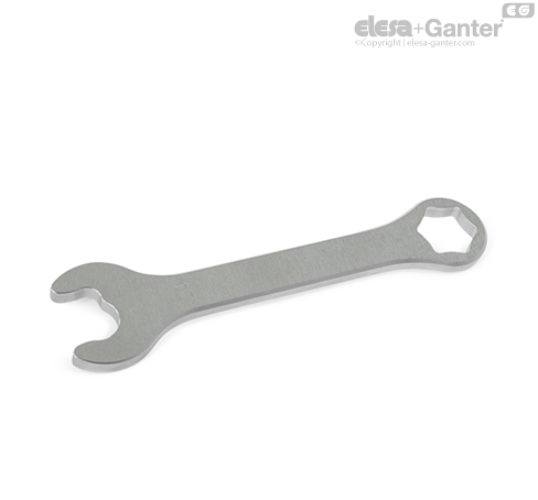 Las llaves combinadas GN 3113 se utilizan para montar y ajustar componentes estándar de Diseño Higiénico con dos o seis caras planas para llave.