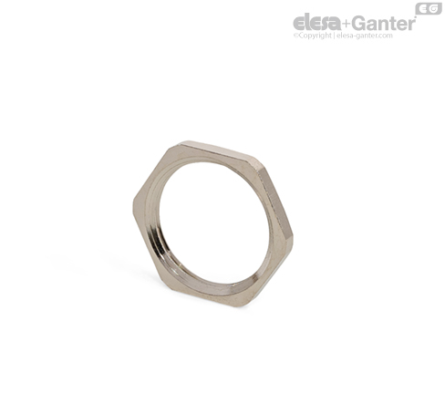 Las tuercas de montaje GN 62444.1 se usan para fijar cajas de cable, reductores o tapones roscados en orificios pasantes en carcasas.