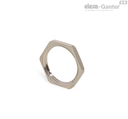 Las tuercas de montaje GN 62444.1 se usan para fijar cajas de cable, reductores o tapones roscados en orificios pasantes en carcasas.