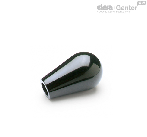 Duroplástico de base fenólica (PF), color negro, acabado brillante.
