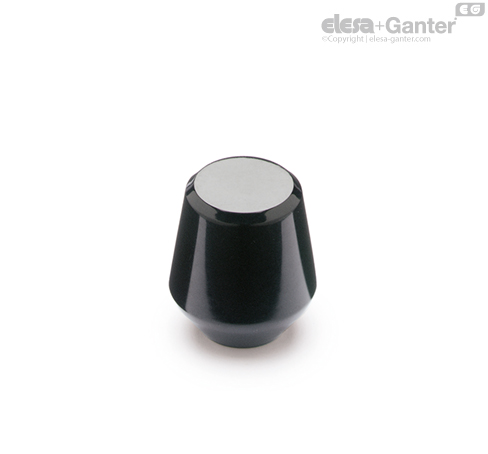 Duroplástico de base fenólica (PF), color negro, acabado brillante.