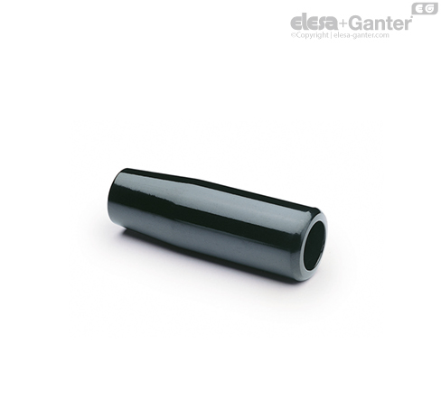 Duroplástico de base fenólica (PF), color negro, acabado brillante.