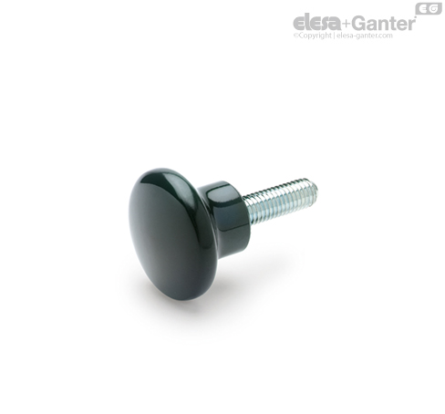 Duroplástico de base fenólica (PF), color negro, acabado brillante.