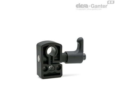 Manillas graduables ERW. de tecnopolímero de base poliamídica (PA) reforzado con fibra de vidrio, color gris-negro, acabado mate con casquillo de acero inoxidable AISI 304, agujero ciego roscado.