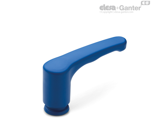 Tecnopolímero de base poliamídica (PA) reforzado con fibra de vidrio, color azul RAL 5005, acabado liso (Ra < 0.8 μm).