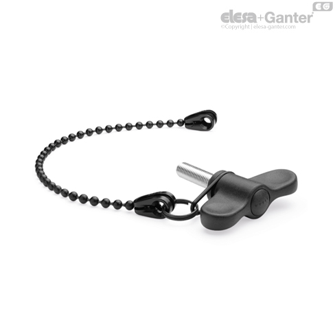 Anillo de retención elástico, alojada en la ranura del pomo, puede girar libremente. La argolla conecta anillo de retención elástico a la cadena.